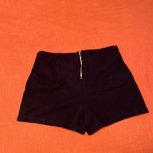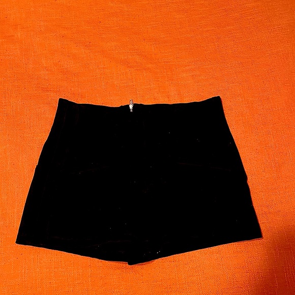 HAVE black short shorts Stretchy Zipper in the back Size Large Fits more like a medium