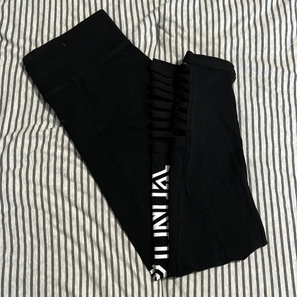 VS PINK BLACK CROPPED LEGGINGS. CUTOUTS ON THE BOTTOM. SIZE XS. WASHED & WORN ONE TIME. GREAT CONDITION.