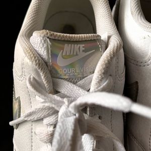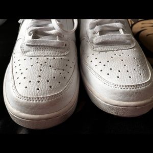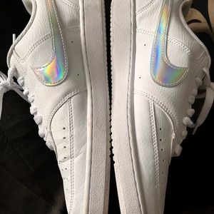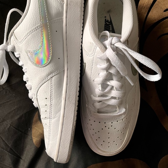 SOLD Lightly used white court vision Nikes with holographic shiny Nike detail