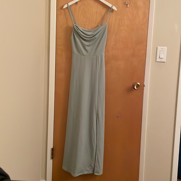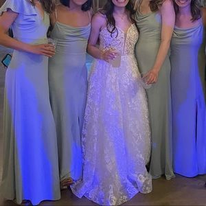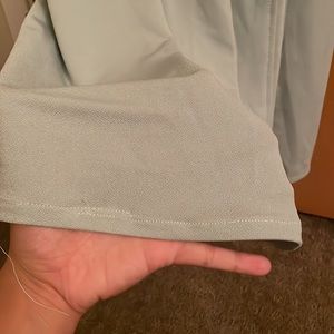 Hemmed to fit a 5’3.5” gal with 2” block heels by yours truly! (Not the best job) but you cannot tell in photos of course. Size is XS but I am a true S. Very stretchy and flattering! Photo shows the worst part of the hem lol. The inside lining is not hemmed. See photos