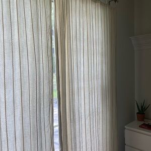 Super cute urban outfitters curtains! Yellow and orange striped and they are a natural color! They are in good condition I have only had them for a few years. I have three of these but the price is set for only two! Please ask me any questions as they are sold out on the website!