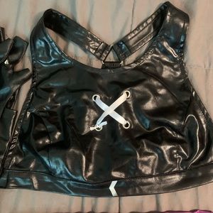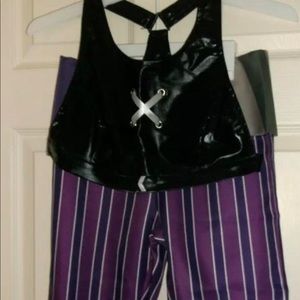 waist of pants is 28” to rest on the hips and the top fits a size S.