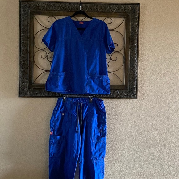 Dickies scrub set in Royal blue. Pants are medium. Top is large. No tears or stains