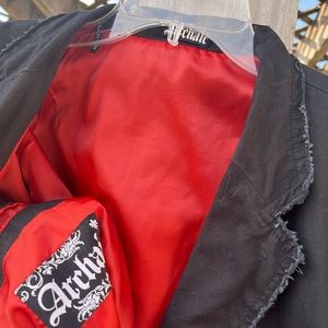 It’s distressed on all the edges and has a red lining with an inside pocket! Archaic logo is on the inside, and there’s two outer pockets! :). In perfect condition.