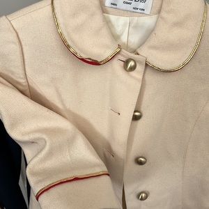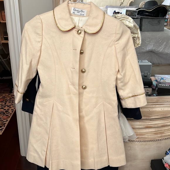 Kids vintage Christian dior wool pleated coat. Beige with gold and red detail. In great condition. Size 5.