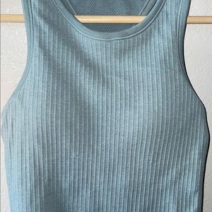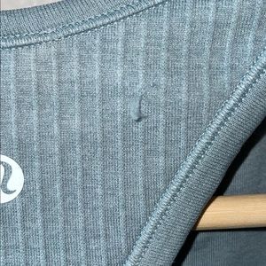 Light teal, lululemon Ebb to Street top cropped. In beautiful condition. There are a few pulls (pictured) but could easily be taken care of with a de-piller or lulu will repair them for you. Size 4
