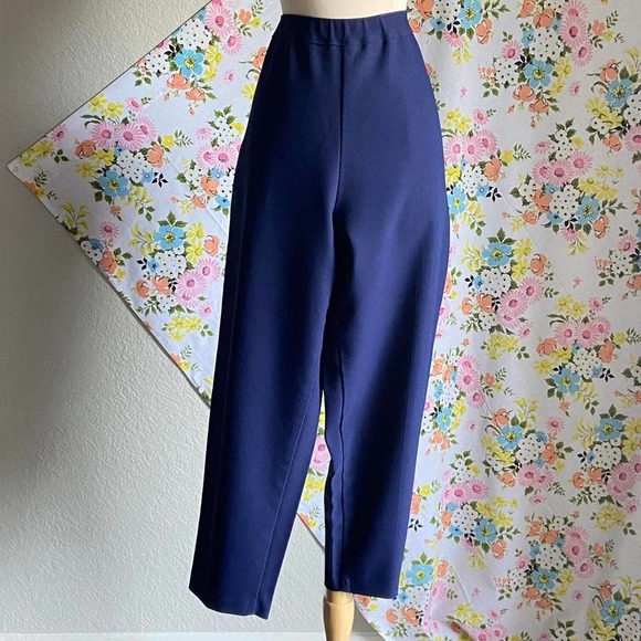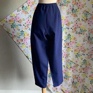 VINTAGE 70S 80S HIGH WAIST NAVY BLUE BEND OVER TROUSER PANTS