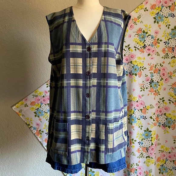 VINTAGE 90S FLANNEL GRUNGE LAYERING VEST size 22/24