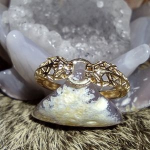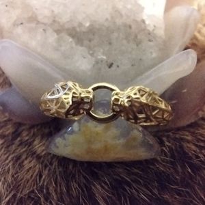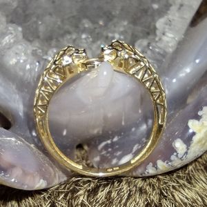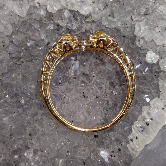 18k gold Double Jaguar Ring with geometric design. Size 8, stamped 18K.