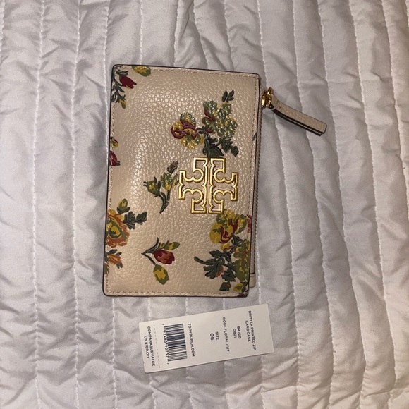 Tory Burch Britten rose floral card holder like new with tag. No stains or marks. Limited edition, hard to find.