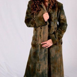 Hand dyed custom Coach vintage suede leather coat, flattering cut and style.