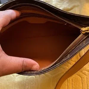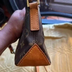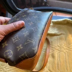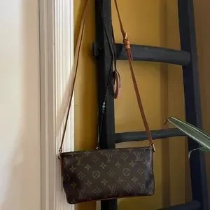Authentic LV Trotter Crossbody in good vintage condition, has signs of wear such as water marks, dark honey patina leather with some minor stains & dirt. Straps are also honey patina with minor water spots. Hardware contain some tarnishing as well. Canvass Vibrant with no rips holes or tears. Clean interior no foul smells or odors.