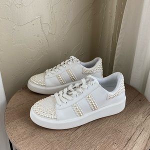 Inc International Concepts Alleni Imitation Pearl Sneakers A flurry of rhinestones adds jaw-dropping sparkle to the hidden-wedge lift of the sporty-chic Debby sneakers from INC International Concepts®. Round-toe sneakers Stay-put straps; allover rhinestone embellishments Cushioned insole for added comfort Fabric upper; fabric lining; rubber sole Lace up closures