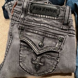 @tdcarter61 sorry, haven’t seen these messages- all of the jeans are minimum 31.5 inseam to a 32- I believe the gray pair is a 33. I liked a longer skinny Jean myself. I’m 5’4, and if you look at my page, you’ll see I listed a ton of Miss Me and Rock Revivals individually at these same lengths.
