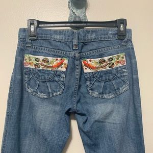 Vintage Joe’s Jeans with embroidered pockets. These are in great condition sitting in closet for the last 13 years. Had these before kids can still fit but really snug, time to let them go. Clearing out closets look for more deals on gently worn items. Inseam 28.5.