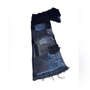 1of1 custom patchwork 3 shades of black Levi’s pieces and other brand pieces , right leg has 7 pockets including back pocket & left leg has 4 including back pocket. Size 34x32