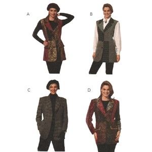 Misses' Lined Jacket or Vest - Semi-fitted lined jacket or vest with front button closing and patchwork trim. Optional pocket flaps.