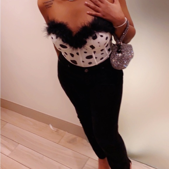 Dalmatian Bustier with faux feathers