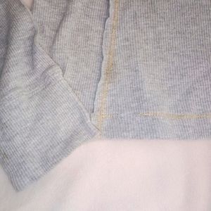 Features 3 buttons in the front, boat neck neckline. The only flaw I see is some thread coming off at the bottom. Other than that it's in good condition.