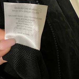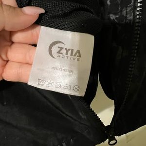 This one is missing the drawstring at the bottom & the black cincher on one side of the hood (thank you toddler for both). Only other “flaw” is the Zyia & size is a little faded on the inside.