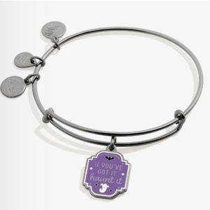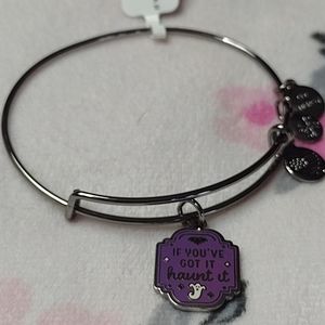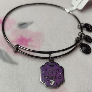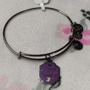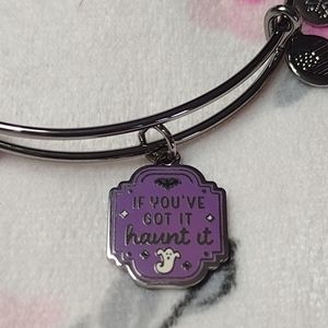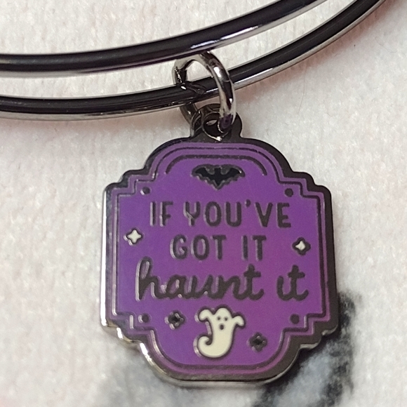 Get in the spooky spirit with Halloween charm bangles! This purple plaque charm features ghost and bat details with "If You’ve Got It Haunt It" printed on the front.