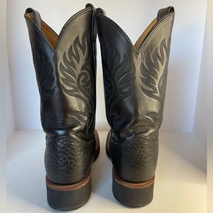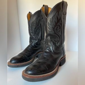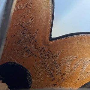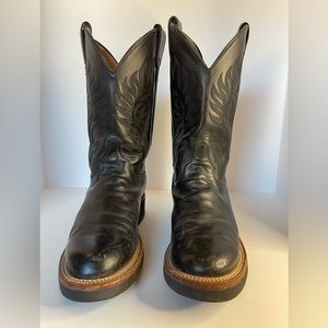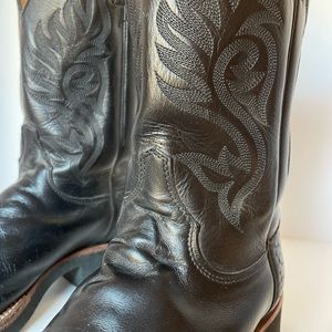 Justin Vintage Men’s leather Cowboy boots. These boots are in good condition. They have some wear, but still have lots of life left! There is a scratch on the side of one of the boots, and it is pictured above. Size 8 B.