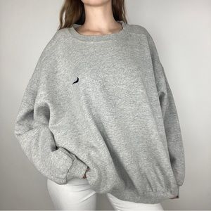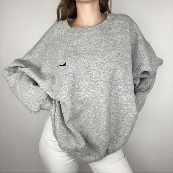 Iconic Nike pullover with a side swoosh. Great condition, some normal age wear but no noticeable flaws. Missing size tag but this is authentic. Shown on a size medium. Fits size xl-xxl best, or smaller sizes if you want a bigger fit.