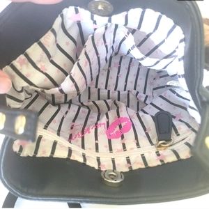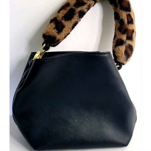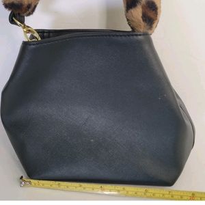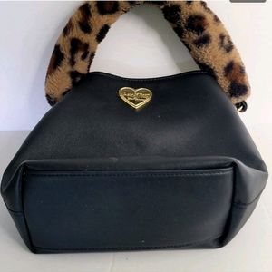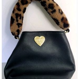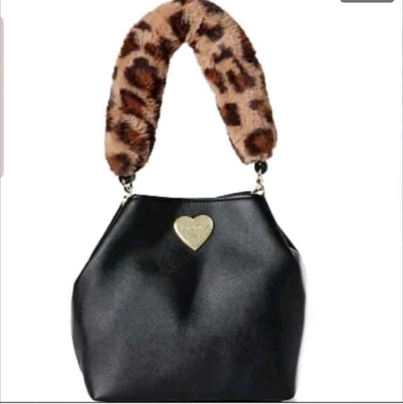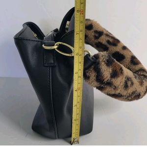 Luv Betsey by Betsey Johnson Handbag Black Bucket Purse Animal Print Fur Handle. Missing the longer strap.