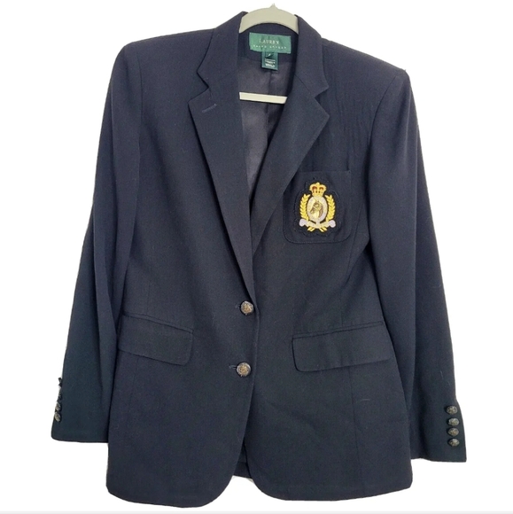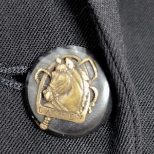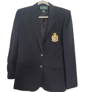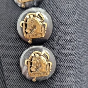 Vintage 90's Ralph Lauren Womens 4 Blazer Black Gold Crest Riding Jacket Equestrian Worsted Wool Blend