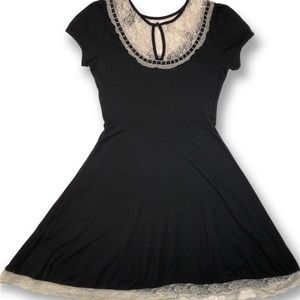 ★ Midnight Hour Lace Accent Short Sleeve Dress ♥︎