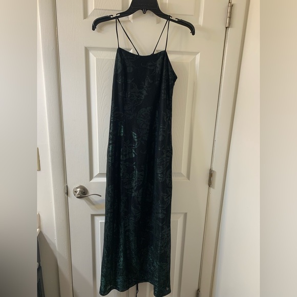 Windsor black and shimmery dark green floral pattern dress with lace up back