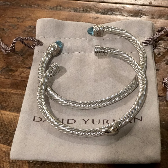 Authentic David yurman bracelets both barely worn. Second bracelet with crisscross is silver in center, not gold as site picture shows. They no longer make the all silver on their website.