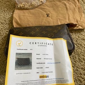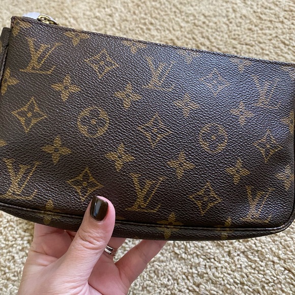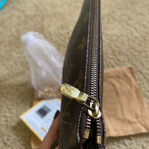 Authentic Louis Vuitton Pochette Accesoires in great condition…. Comes with authentic Louis Vuitton dustbag, a generic gold chain & Certificate of Authenticity from Entrupy.
