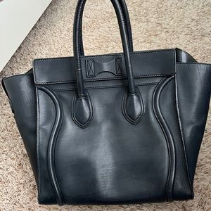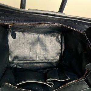 Pre-loved, comes with dust bag. Black color but appears dark navy in certain light. Most visible wear is in the corners. Still a very beautiful and functional bag. This is the Micro size. Willing to negotiate within reason. Interior pocket has some peeling