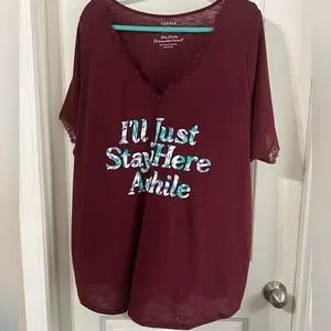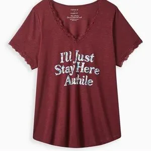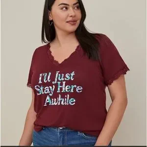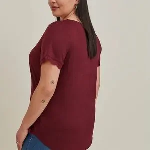 Torrid short sleeve lace trim tee. Wine color. Torrid size 4. Excellent condition
