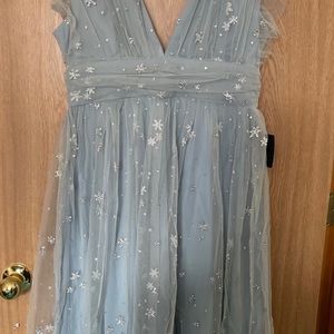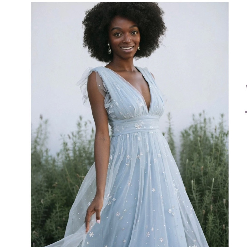 This is a very pretty and delicate dress! I bought it for an event but was one size too small for me so it was never worn out! It’s tagged as an XL but I would say it fits more like a Large. Still has the tags attached to it! Please let me know if you have any questions :) ***Listed on other platforms as well so please ask about availability before purchasing!!***