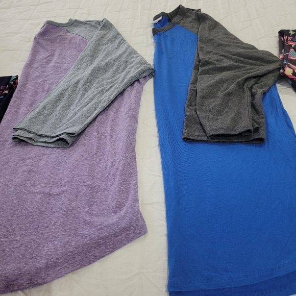 Both tops are 3x. The leggings are TALL & CURVY. Up to size 3x. Tops are new never worn! One pair of leggings I wore once. They fit because of the stretch in the fabrication. If you are Large and up ...no problem!Pretty colors, wear out or use as pj's!
