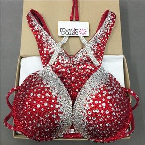 NPC/IFBB approved. This gorgeous Wellness suit is up for grabs! Only worn once, dry cleaned and is in flawless condition! Specially made. Top can fit anywhere from A-C cup depending on how much you stuff or unstuff. For example I am a 34b. Bottoms can fit small-medium. Red isn’t my style anymore so get your hands on this stunning piece!! I had great judges feedback in this! For reference I am 5’9 and stage weight was 145.