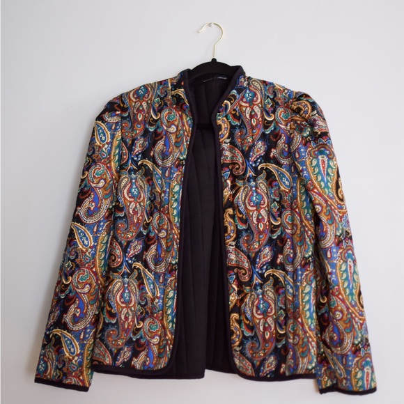 A lovely vintage quilted coat/blazer with interesting different colores patterns. With a nice detail on the shoulders.