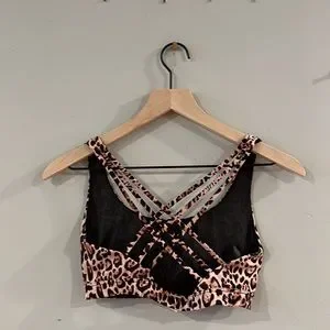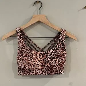 Light support strappy back leopard print sports bra. Padding has been removed.