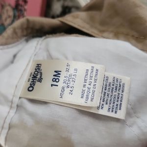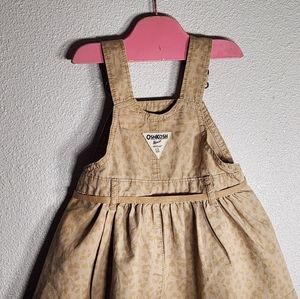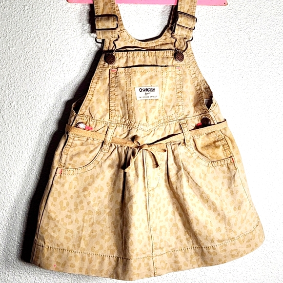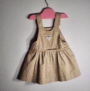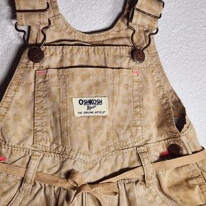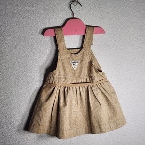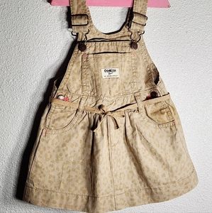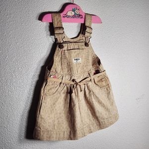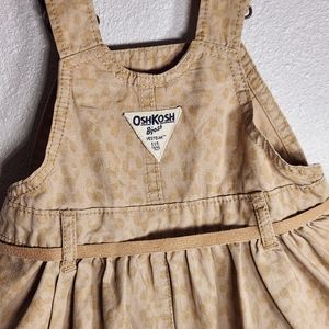 vintage Oshkosh B'gosh V Back overall dress. 18 months. Light brown/Beige animal print w matching ribbon belt. This overall dress is in like new condition. So cute for Spring or Summer.