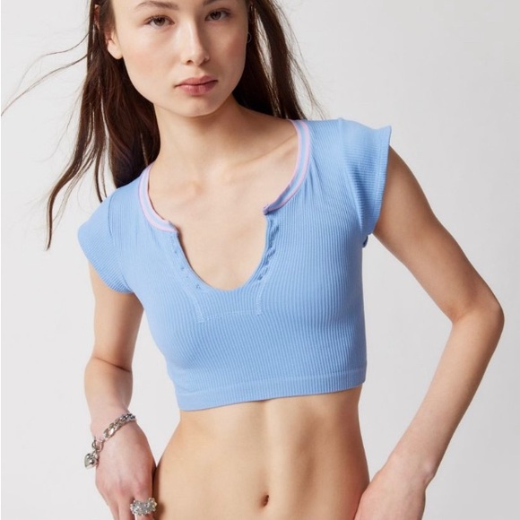 urban outfitters go for gold seamless top in xs/s. excellent condition only worn once! color is sky blue.