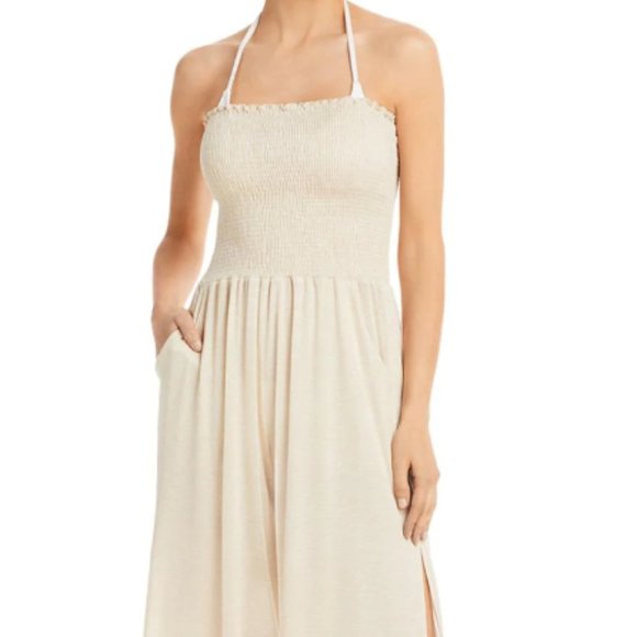 Golden Shimmer Smocked CoverUp/Romper with pockets by Peixoto