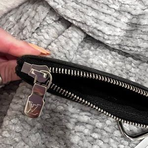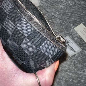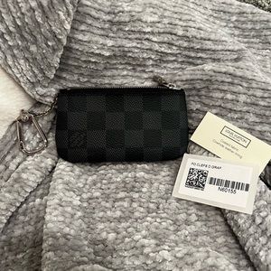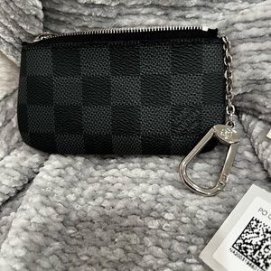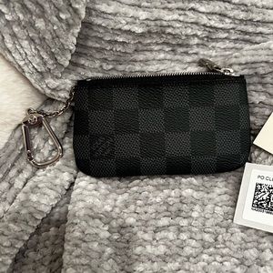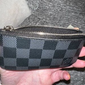 Men’s graphite Damier Ebene canvas key pouch, first most credit cards and ID cards.