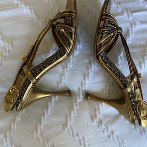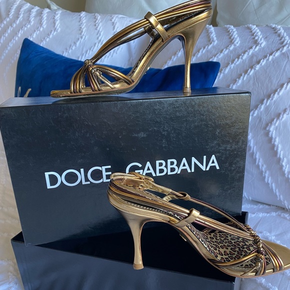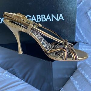 Gorgeous Dolce Gabbana heel. Is in excellent condition. No scratches on leather of shoe. Heel is barely worn. Only wear is on bottom of shoes as in photos. Leopard shoe pad installed for comfort. Size 37 which is a USA size 6. Heel measures a little over 3 inches. Box and dust bag are included with purchase. Ask any questions.
