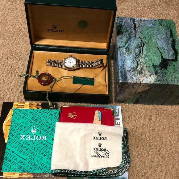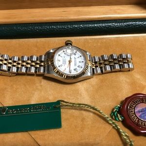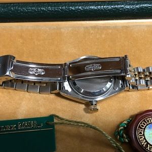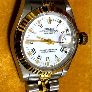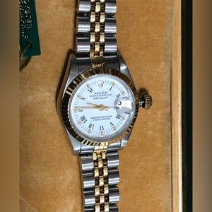 Authentic two toned Rolex Datejust Watch purchased from PoshMark and never worn. Comes with box and authentication. This has 26mm case. Overall very good condition. Reasonable offers entertained only.