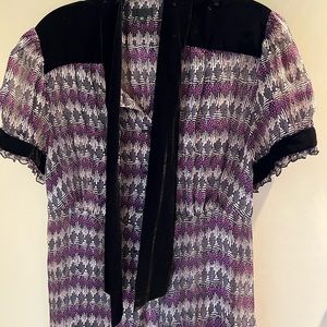 ANNA SUI features 5 front Buttons shirt and black velvet collar,100% silk