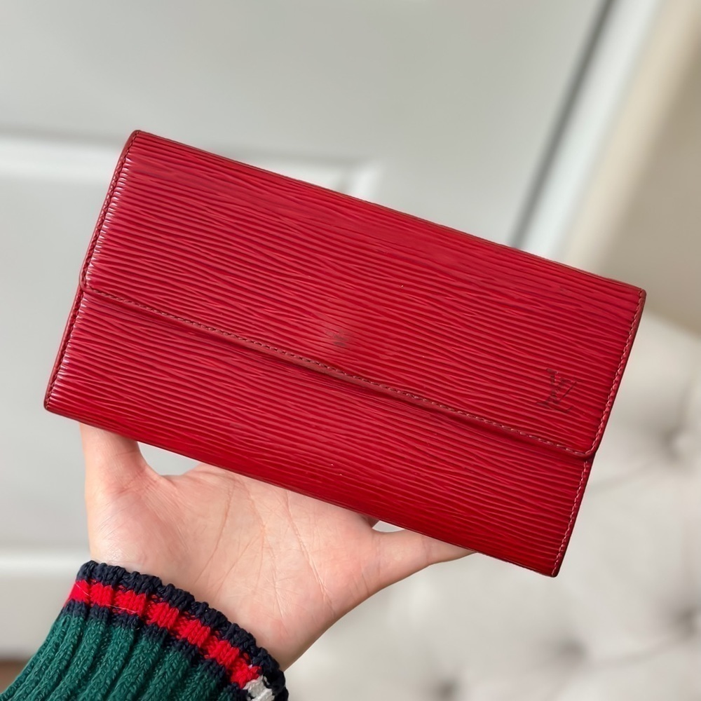 Vintage Louis Vuitton wallet Porte monnaie epi leather in beautiful red color , amazing condition, NO peeling inside.