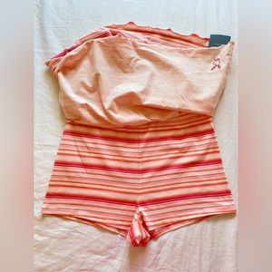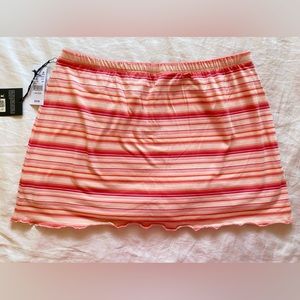 •Pink, White, Peach stripes with little pink bow detail in the front. Elastic Waistband. Lettuce edge hem.