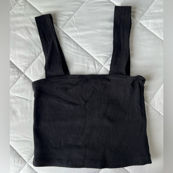 Ribbed black tank top with straight neckline / square neckline. Lightly used, no pilling / rips / holes / tears